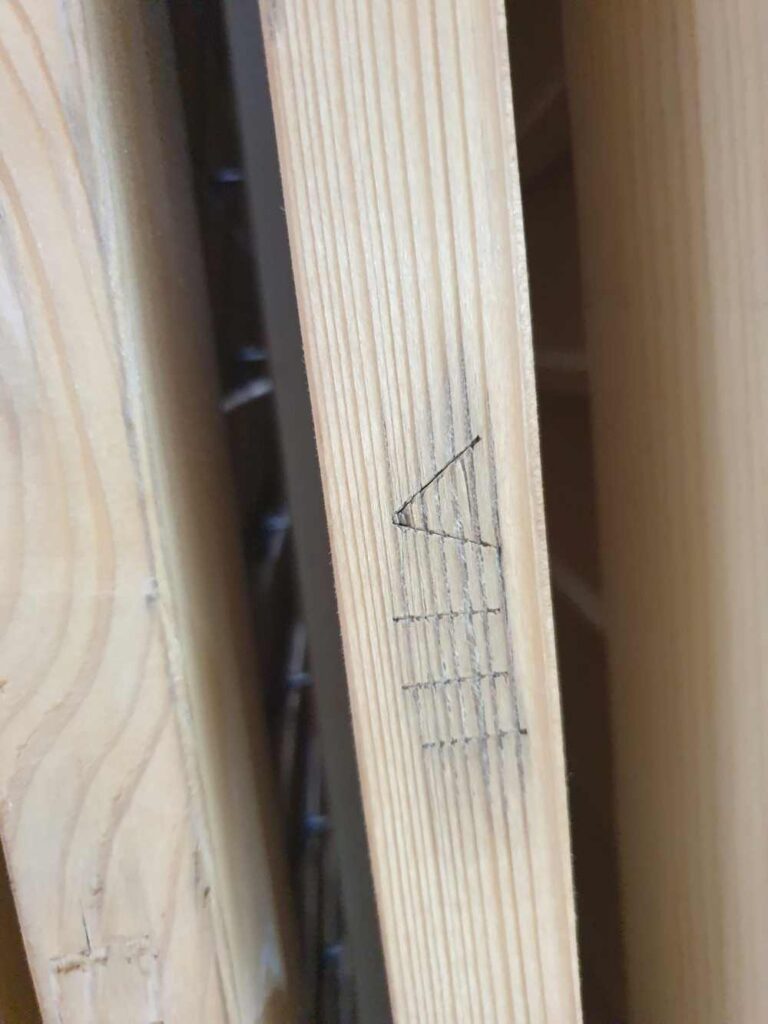 Nachdem alle Fensterläden überprüft und angepasst sind, sollte gewährleistet werden, dass diese dementsprechend nummeriert werden, damit die fertiglackierten Läden am dazugehörigen Fenster wieder eingehängt werden können.